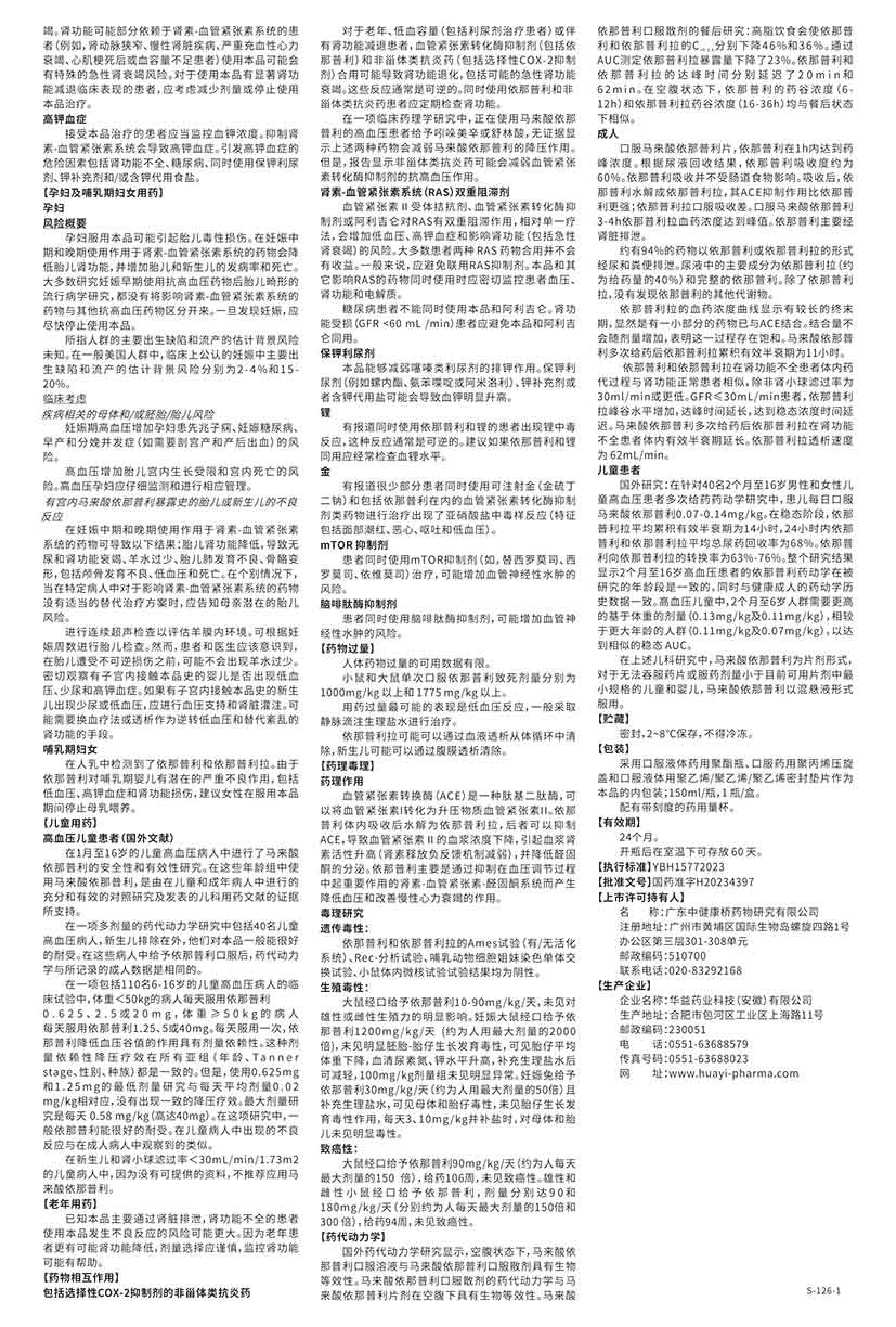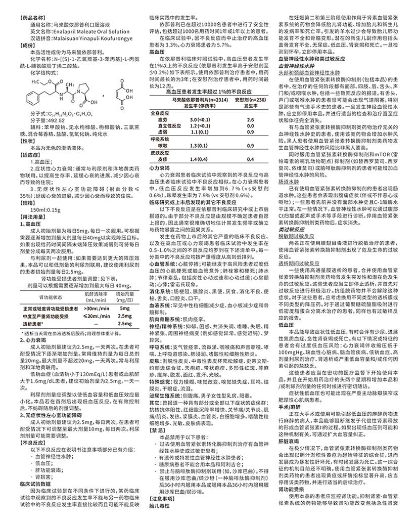马来酸依那普利口服溶液